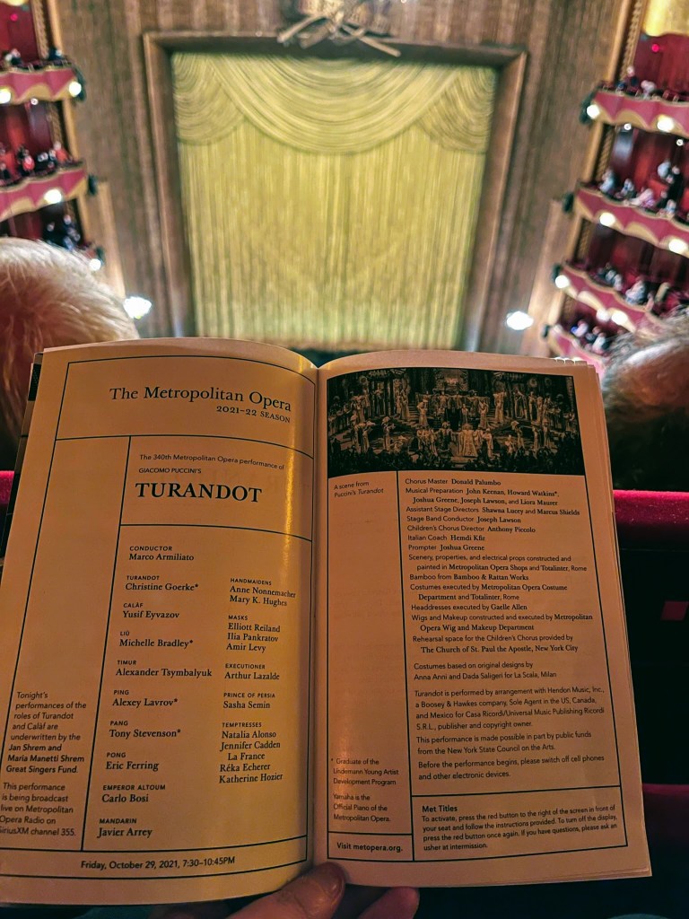 Dan Turandot y la cantante principal se nos parece nada menos que a Liliana Morillo, la hija de la eterna diva zuliana Lila Morillo. Salimos del teatro muertas de risa hablando de los paralelismos de una escena de la obra de Puccini con la telenovela Leonela y el aria del tenor con “Ladrón de tu amor” de Gualberto Ibarreto.