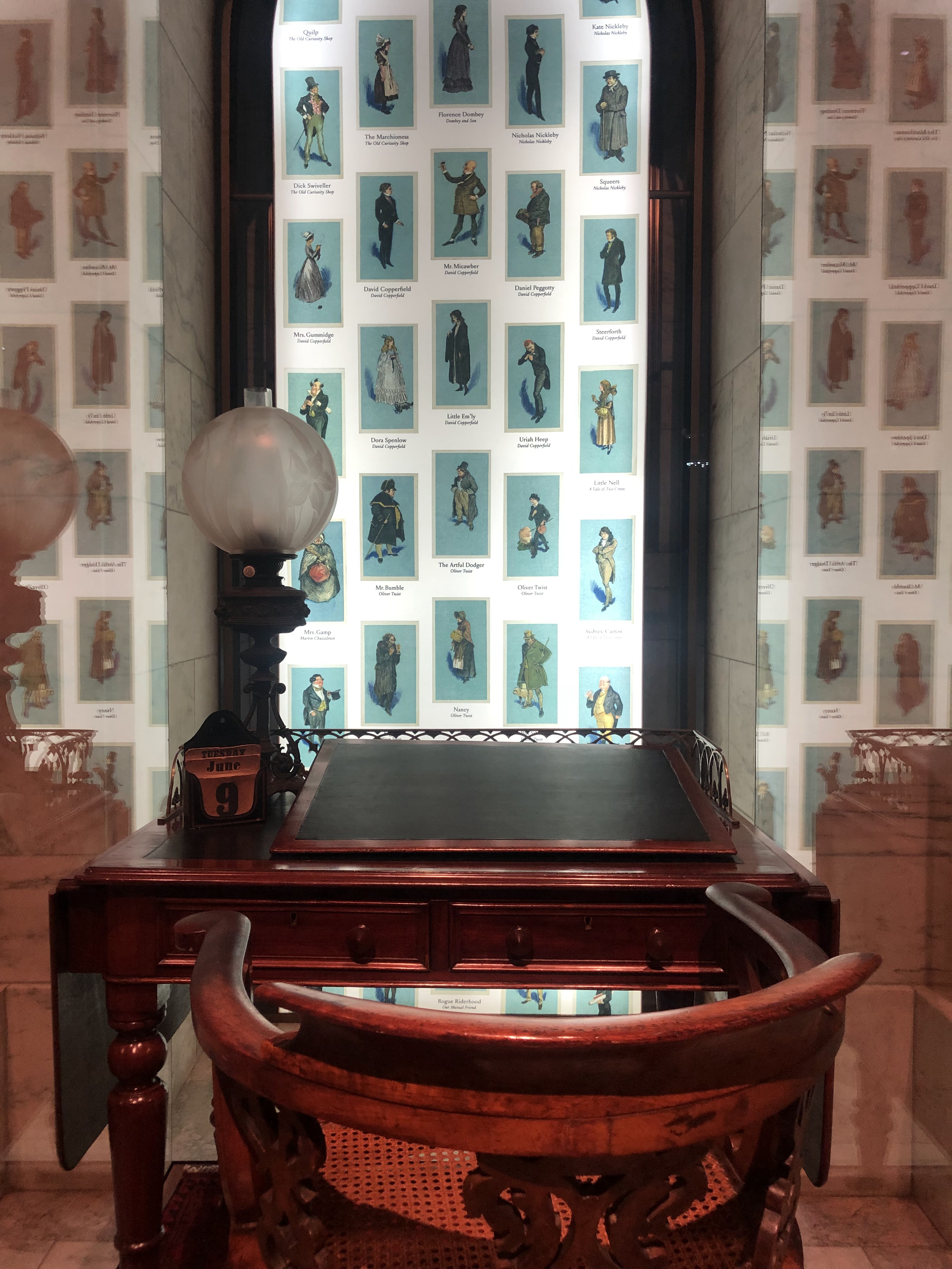 Sigo avanzando y me encuentro con el escritorio de Charles Dickens frente a sus personajes principales.