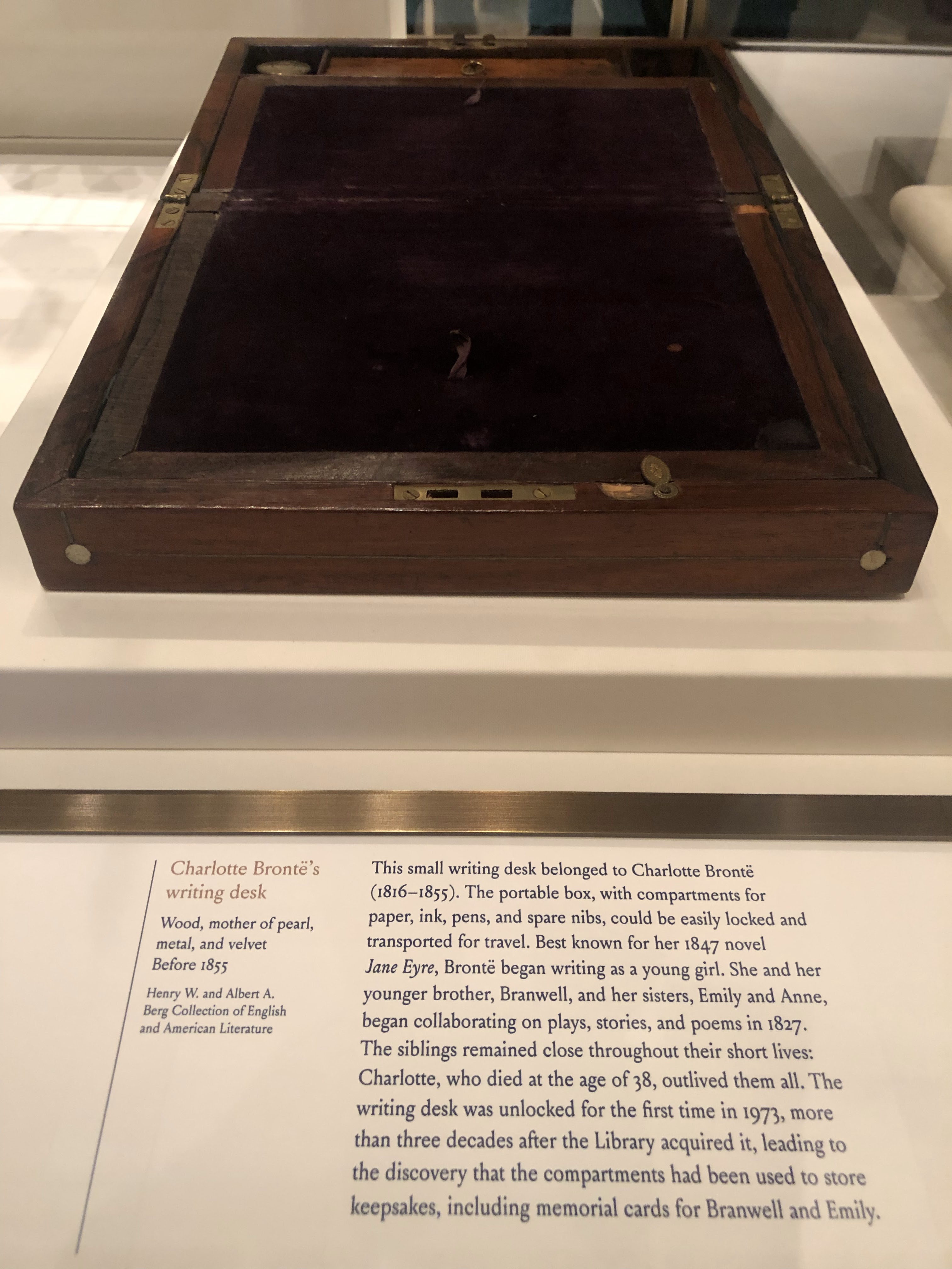 Luego imagino a Charlotte Bronte escribiendo Jane Eyre en este pequeño escritorio portátil.