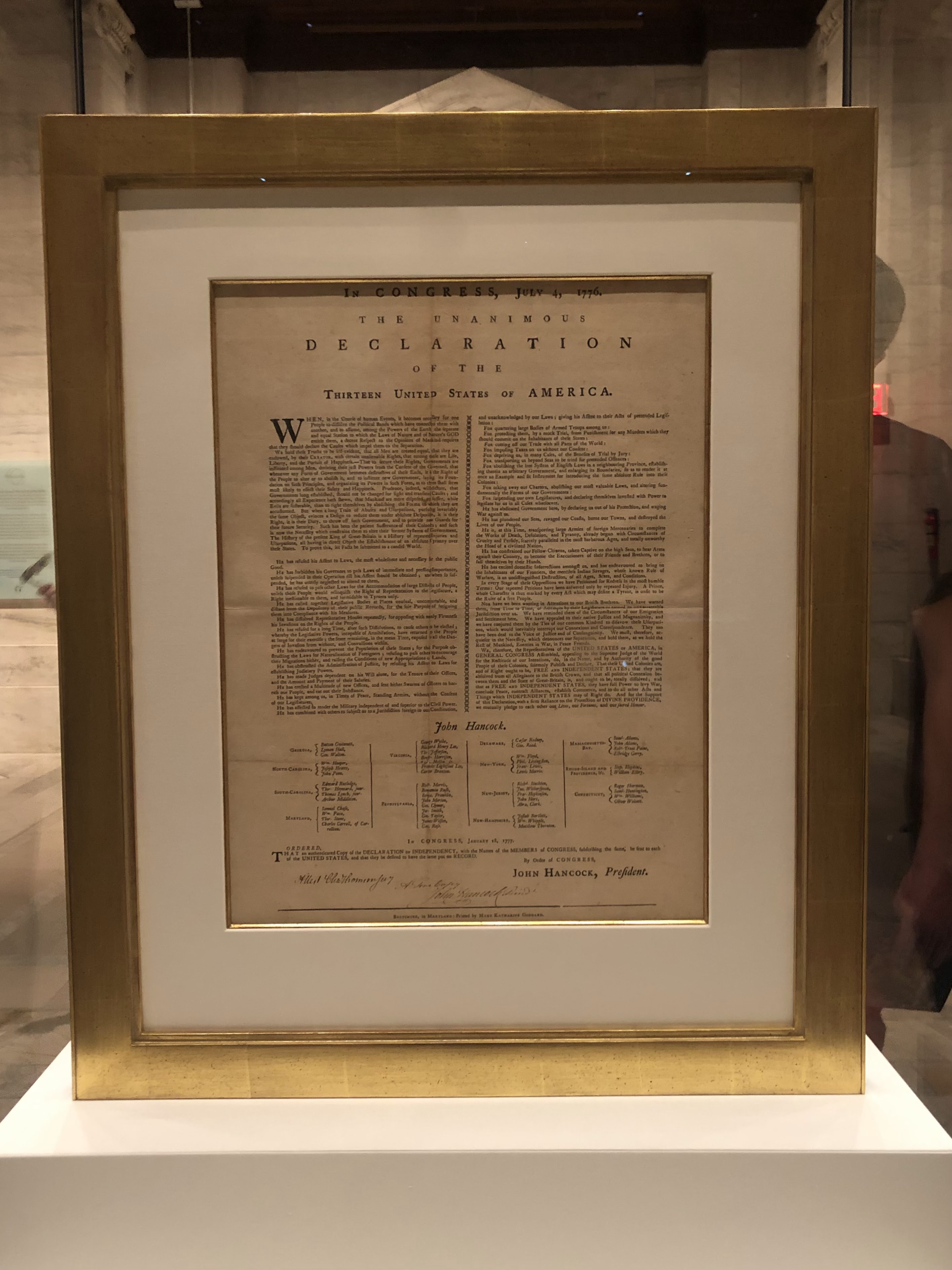 Al llegar a la sección dedicada a los derechos civiles me detengo a leer la declaración de independencia de los Estados Unidos,