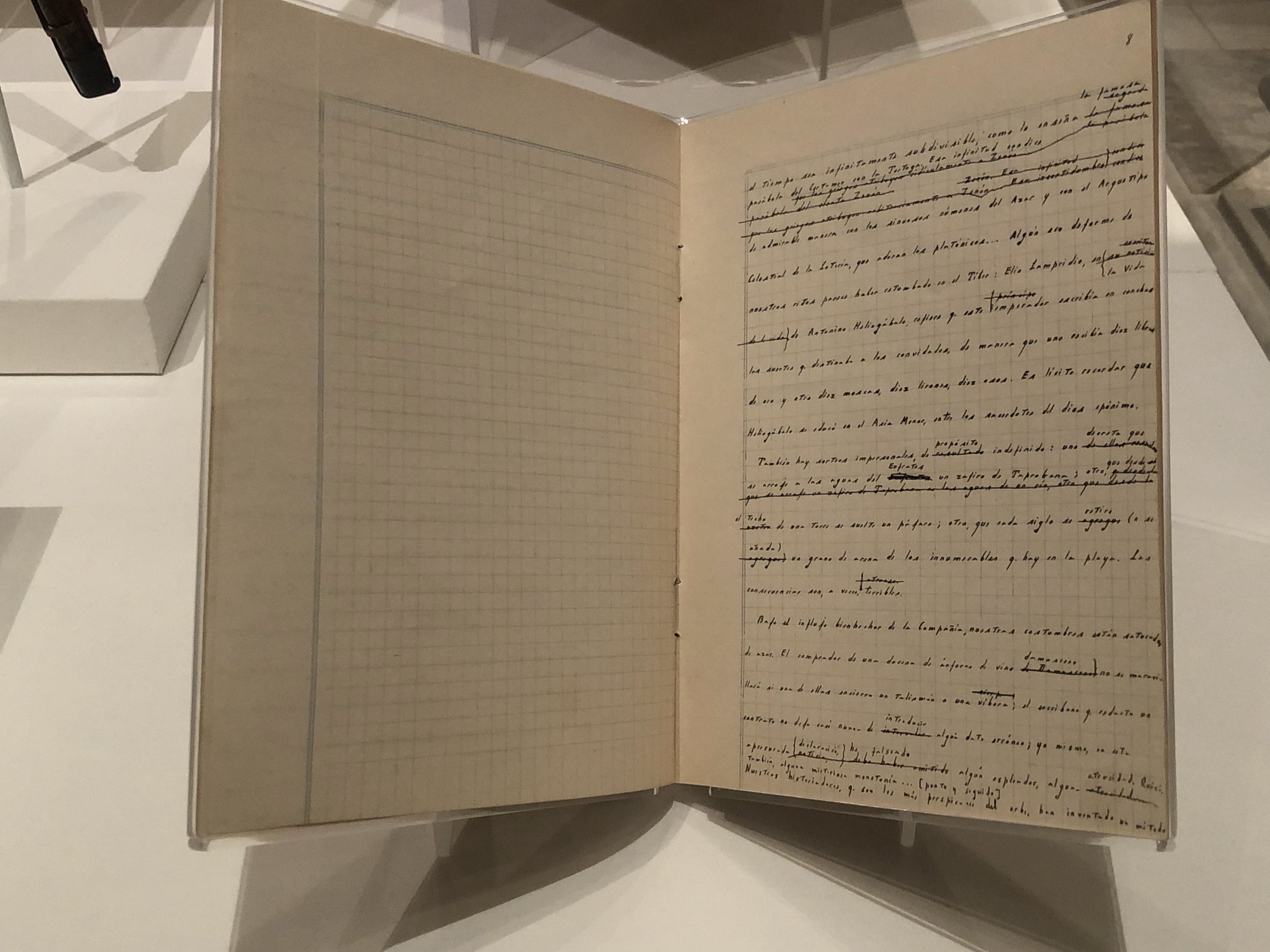 Continúo el recorrido y ahora mis ojos se posan en un manuscrito de mi venerado Jorge Luis Borges, quien también amaba las bibliotecas.